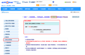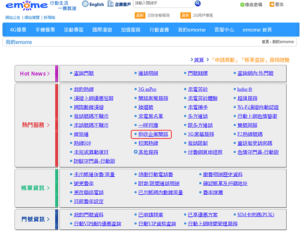 各家電信公司有提供拒收企業簡訊之服務,可能導致無法正常接收驗證碼簡訊。下圖以中華電信為例,請登入emome網站後點選「我的emome」→「申請服務」中點選「拒收企業簡訊」,確認此服務是否為「未申請」狀態,若申請可能導致簡訊停用而無法正常接收簡訊。